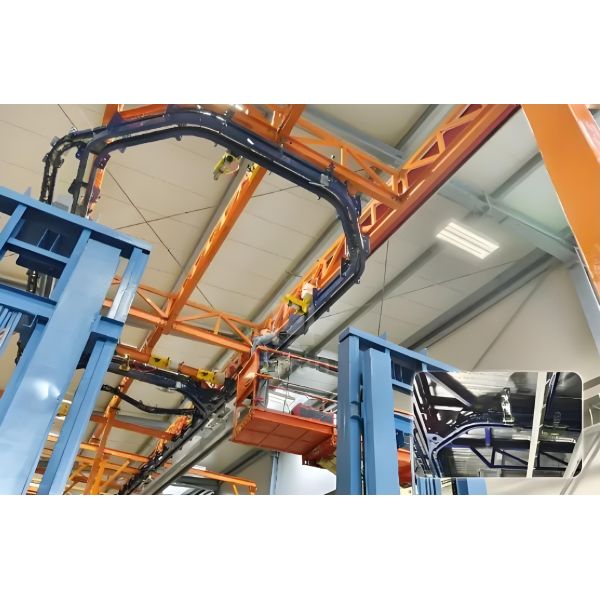 The automatic powder coating line for aluminum profiles, including fences, cabinet doors, and window frames, incorporates a series of steps designed to ensure high-quality finishes and efficiency. These steps include degreasing, surface conditioning, phosphating, and drying, with each process tailored to the specific requirements of the workpieces. For rusted workpieces, additional processes such as shot blasting or sandblasting are required.